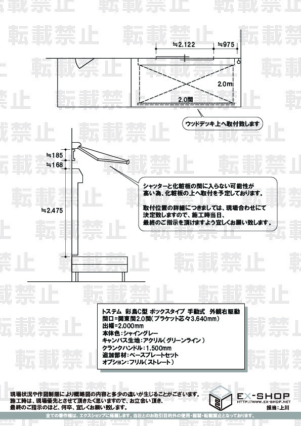 サイズ | 間口 3,640mm 出幅 2,000mm |
