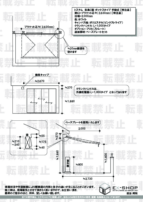 サイズ | 間口 2,630mm 出幅 2,000mm |