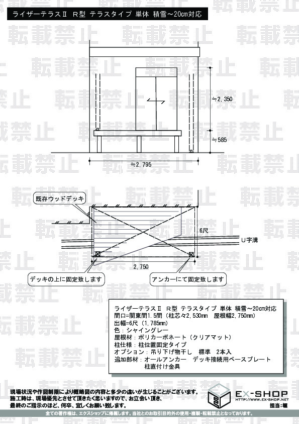 サイズ | 屋根幅 2,750mm 出幅 1,785mm |