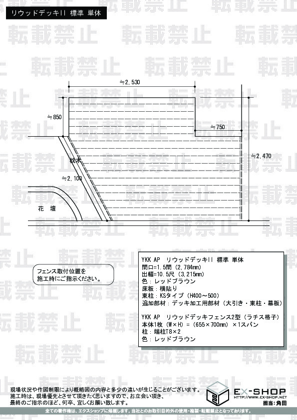リウッドデッキIIをお客様の敷地に合わせてカットさせていただきましたが、とても素敵なお仕上りに、スタッフ一同、大変嬉しく思っております。レッドブラウン/アルミ(カームブラック)のお色も、落ち着きがあって素晴らしいですね。担当施工士に嬉しいお誉めのお言葉を頂きまして、誠に有難うございます。施工士にとりましては、こういったお喜びのお言葉が何より励みとなりますので、早速お伝えしたいと存じます。今後も絶えず企業努力を続け、更にお客様にご満足いただけるサービスを目指すよう、努めてまいります。またのご利用、心よりお待ち申し上げております。