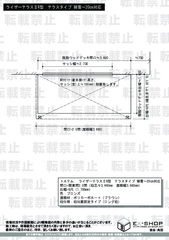 | サイズ | 屋根幅 3,660mm 出幅 1,785mm |