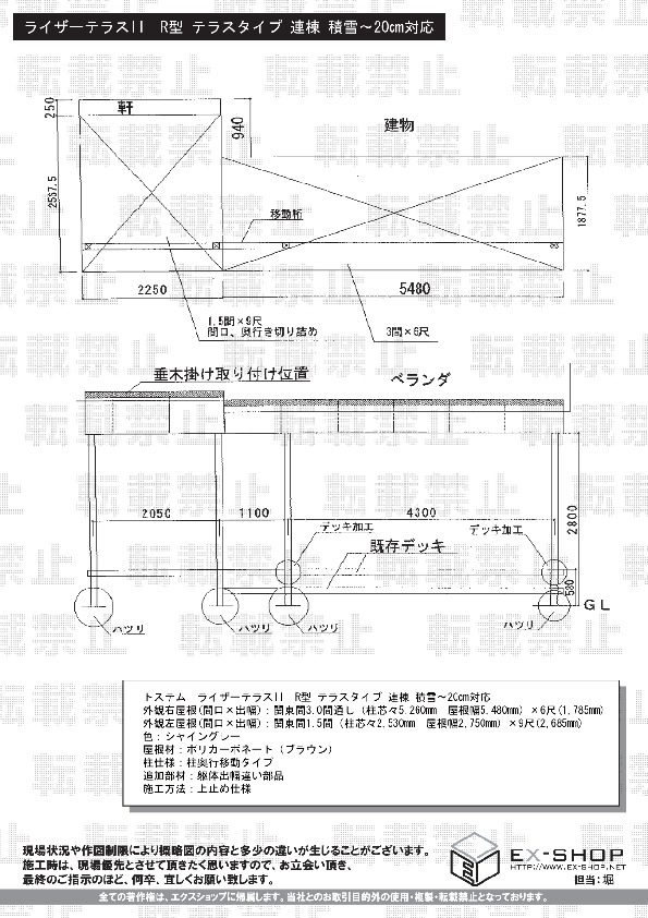 | サイズ | 屋根幅 5,480mm 出幅 1,785mm |