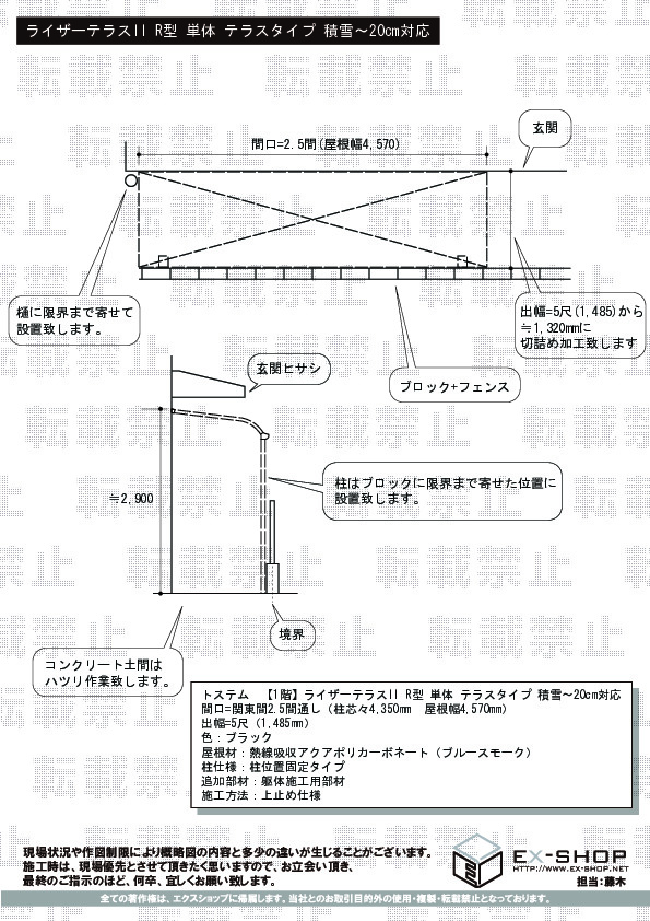 サイズ | 屋根幅 4,570mm 出幅 1,485mm |