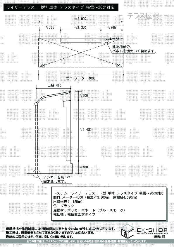 サイズ | 屋根幅 4,020mm 出幅 1,185mm |