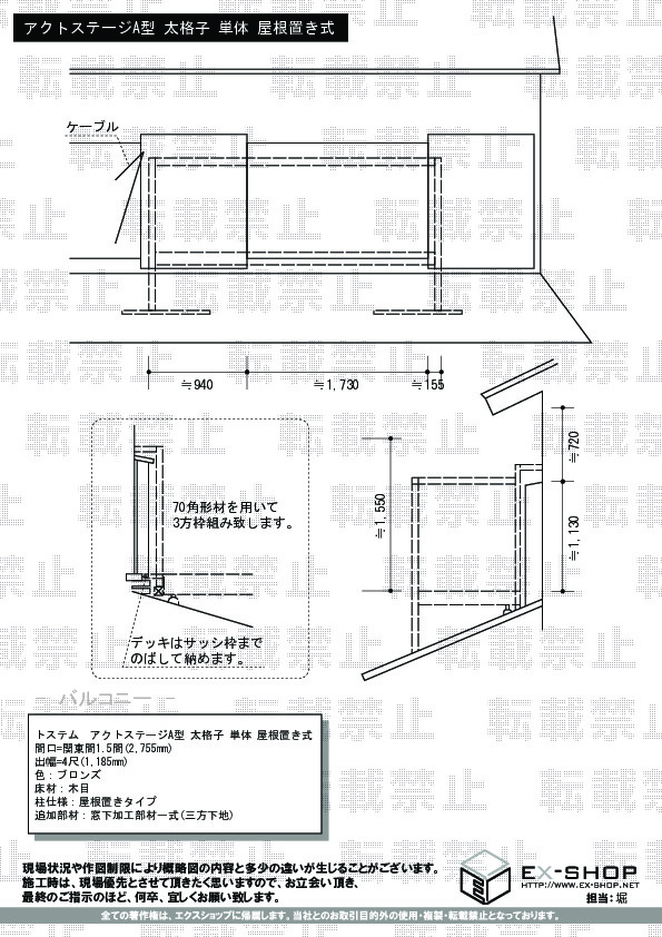この度は、アクトステージA型の施工をご依頼頂きまして、誠に有難うございました。ブロンズの色がご自宅の外観にマッチして、まるで後付けのエクステリアとは思えない納まり具合に安心致しました。多くの場合が実物を見ないでのご利用になりますので、できるだけ安心してご利用頂きたいとの思いで、施工概略図を、添付致しております。少しでも、お役に立てて頂ければ、幸いでございます。今後もよりよいシステムを構築しお客様にお喜び頂けるよう努めてまいりますので、また機会がございましたらぜひ、弊社をご用命頂けますよう、宜しくお願い致します。