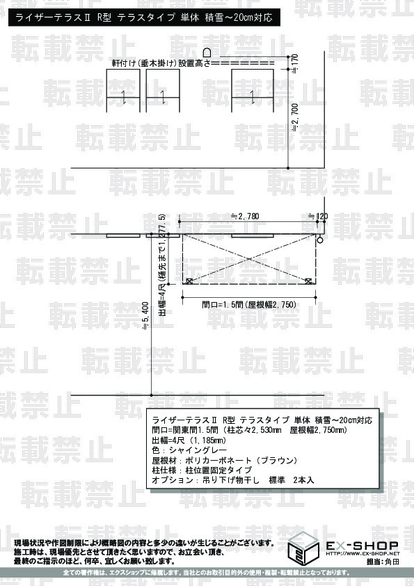 サイズ | 屋根幅 2,750mm 出幅 1,185mm |