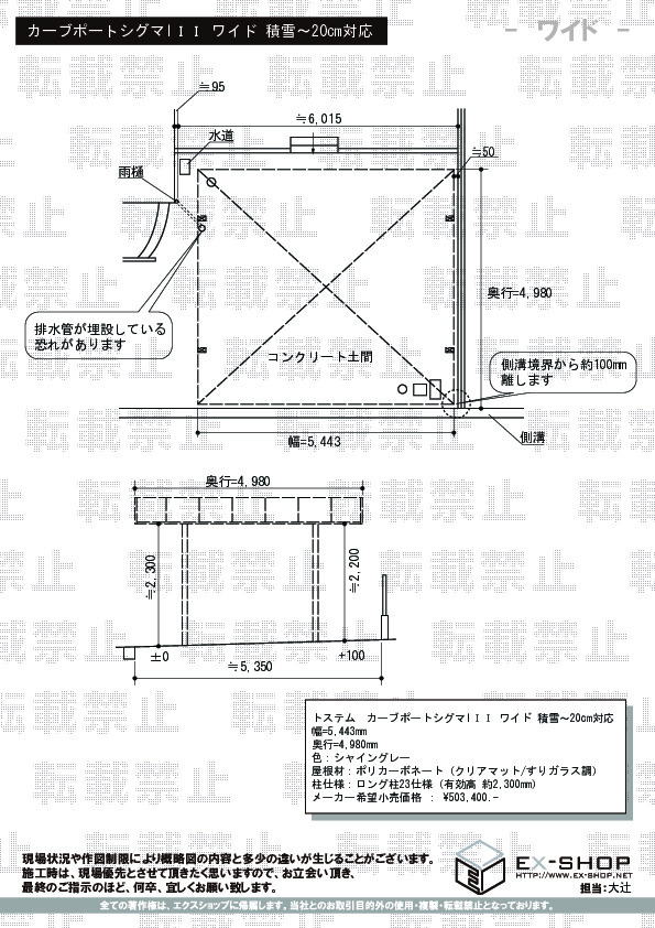 ワイドタイプのポリカーボネート(クリアマット/すりガラス調)のお屋根が美しい、カーブポートシグマIIIの施工をご依頼頂きまして、誠に有難うございます。日程も含め、お客様のご希望に沿う形で、すべて進行することができましたことは、私どもにとりましても自信となりました。担当致しました施工士もご期待にお応えすることができ、大変喜んでおります。これからも、お客様のご期待を裏切らないよう精進して参りますので、また機会がございましたら、ぜひエクスショップをご利用頂けますよう、宜しくお願い致します。