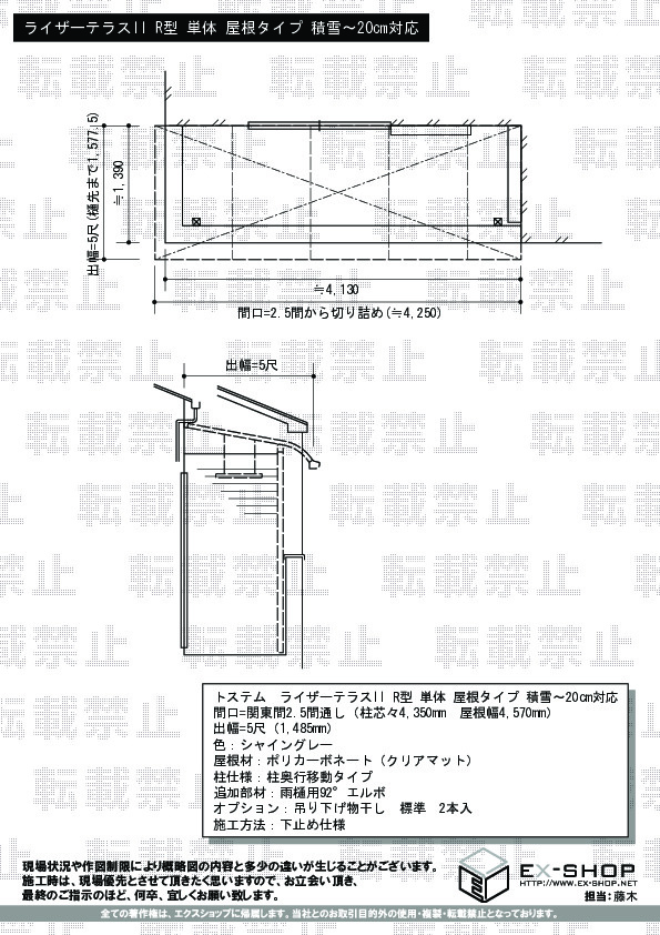 サイズ | 屋根幅 4,570mm 出幅 1,485mm |