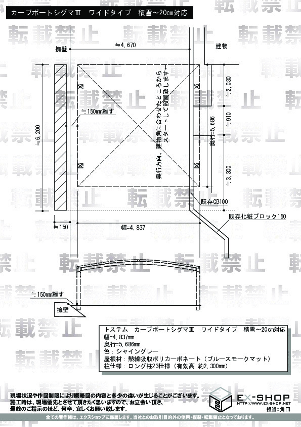 | 屋根高等 | 標準柱仕様(有効高:2000mm) |