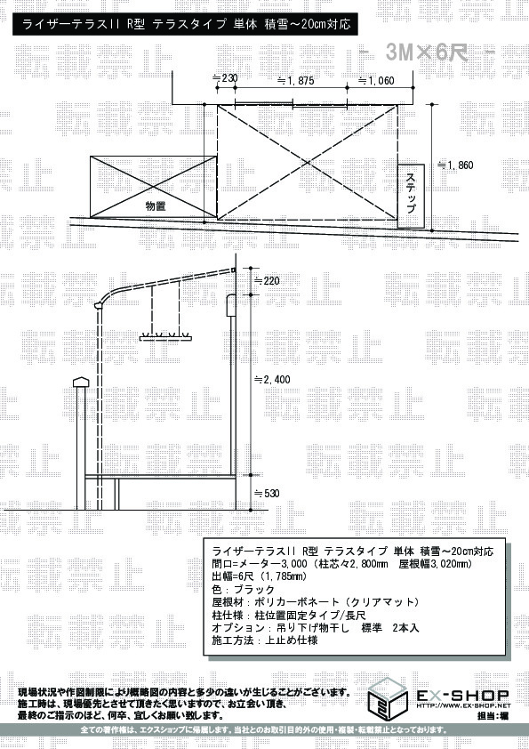 サイズ | 屋根幅 3,020mm 出幅 1,785mm |