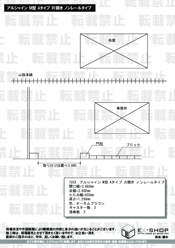 こちらこそ、スムーズな施工にご協力頂き、厚く御礼申し上げます。提携施工店の調整がつかず、メーカー責任施工でのご利用となりましたが、お客様のご希望に沿う形で、すべて進行することができましたことは、私どもにとりましても自信となりました。シンプル、かつ機能的な蛇腹式アルシャイン M型のとても素敵な納まり具合に、スタッフ一同嬉しく思っております。今後も絶えず企業努力を続け、更にお客様にご満足いただけるサービスを目指すよう、努めてまいります。また機会がございましたら、ぜひエクスショップをご利用頂けますよう、宜しくお願い致します。