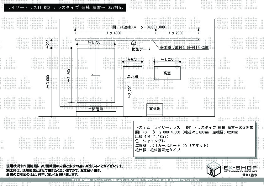 | サイズ | 屋根幅 6,020mm 出幅 1,185mm |