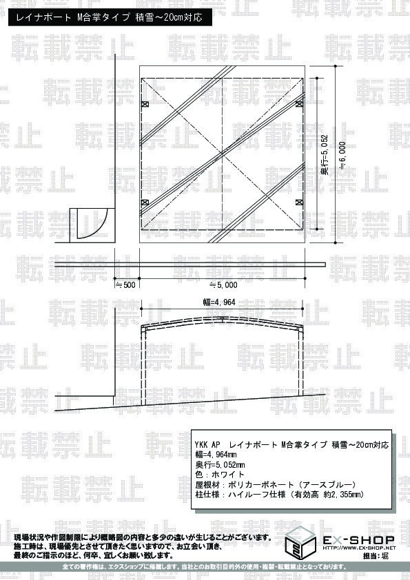 | 屋根材等 | ポリカーポネート(アースブルー) |
