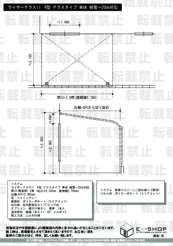 サイズ | 屋根幅 2,750mm 出幅 2,385mm |