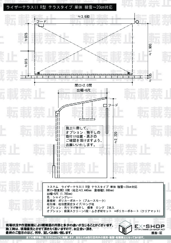 サイズ | 屋根幅 3,660mm 出幅 1,785mm |