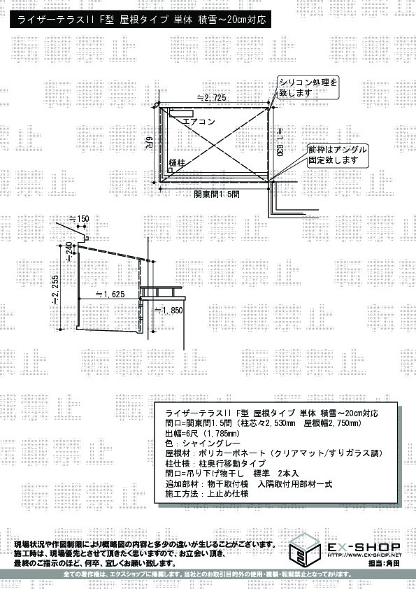 | サイズ | 屋根幅 2,750mm 出幅 1,785mm |