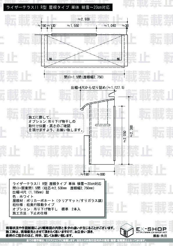 サイズ | 屋根幅 2,750mm 出幅 1,185mm |