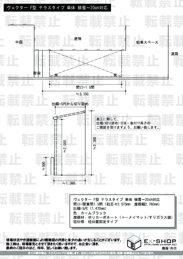 サイズ | 屋根幅 2,760mm 出幅 1,470mm |