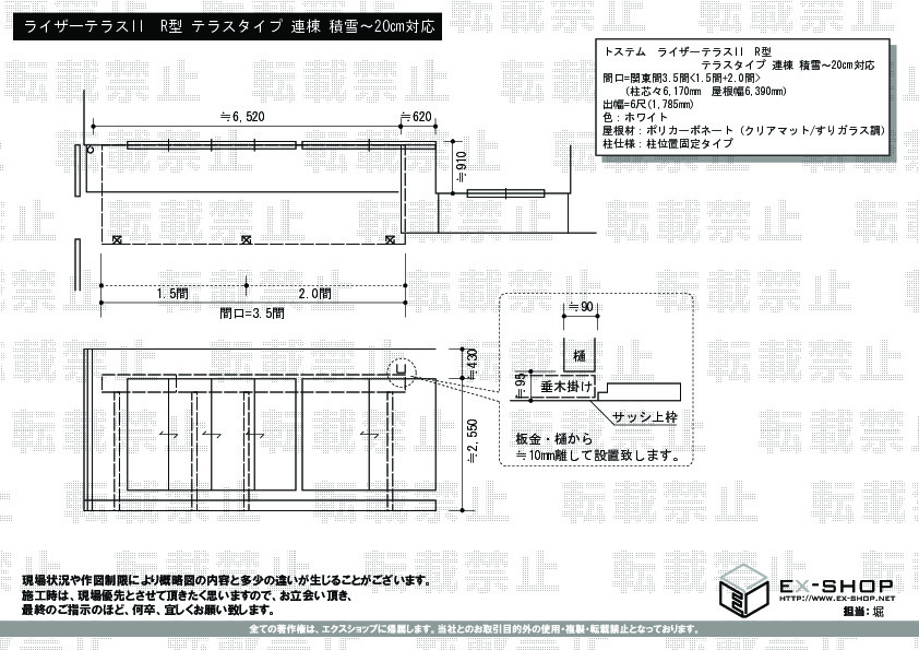 サイズ | 屋根幅 6,390mm 出幅 1,785mm |