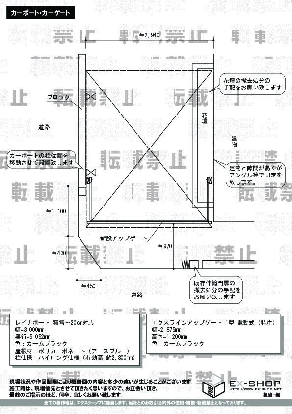 現在自動カーゲートがついていますが、ゲートの幅を広くしたいと考えています。