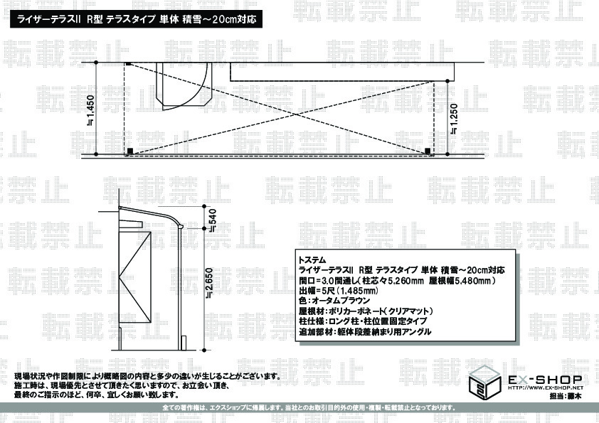 サイズ | 柱芯々 5,260mm 柱芯々 5,480mm 出幅 1,485mm |