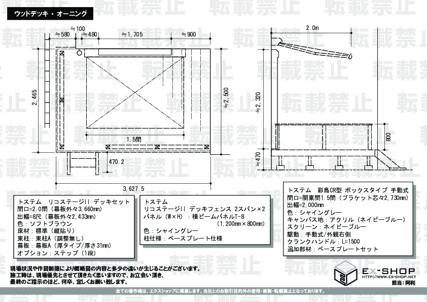 サイズ | ブラケット芯々 2,730mm 出幅 2,000mm |