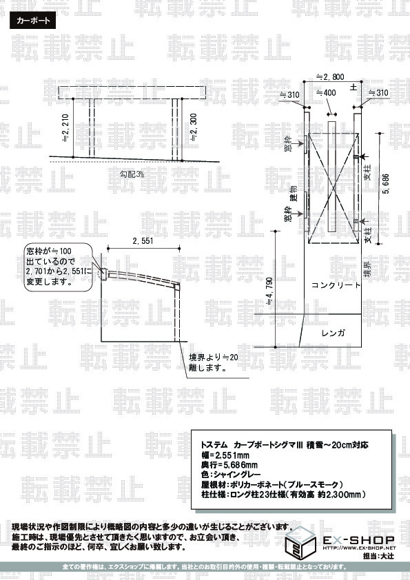 【商品カテゴリ >カーポート】(ご質問No.707)