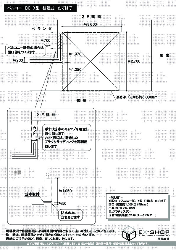 ルシアスバルコニー 柱建式 たて格子 単体