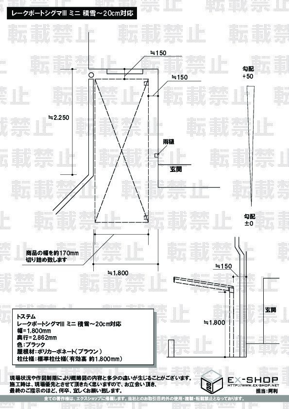 | 屋根高等 | 標準柱仕様(有効高:1800mm) |