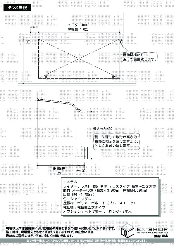 サイズ | 屋根幅 4,020mm 出幅 1,785mm |
