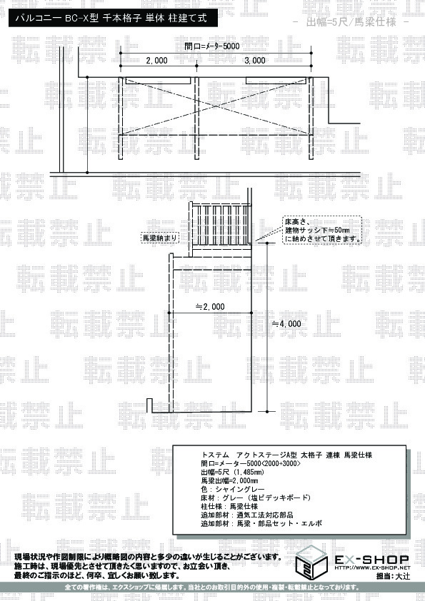 | サイズ | 間口 5,003mm 出幅 1,470mm |