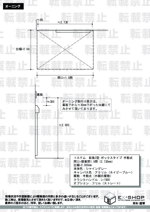サイズ | 間口 2,730mm 出幅 2,000mm |