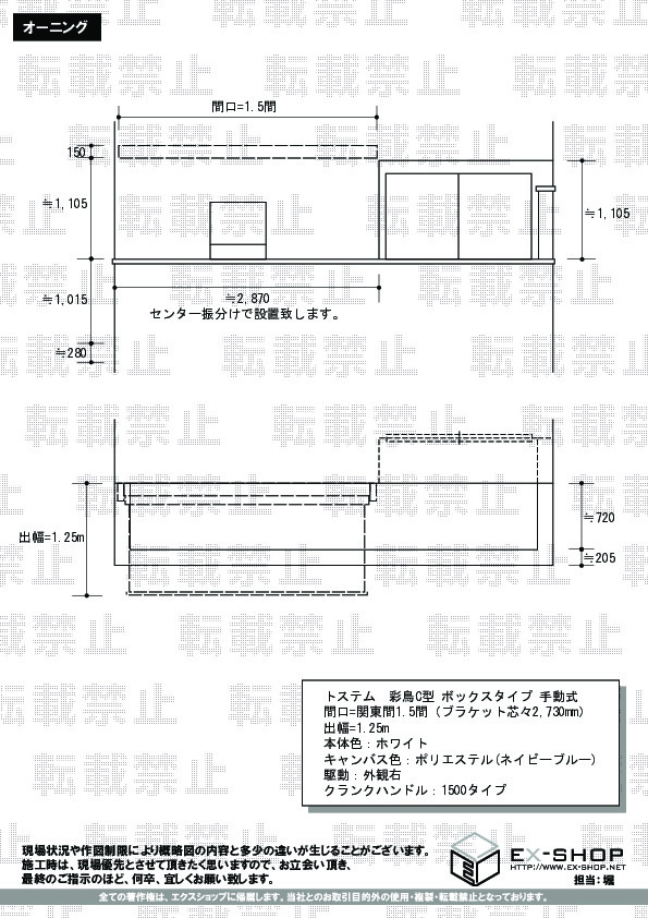 サイズ | ブラケット芯々 2,730mm 出幅 1,250mm |