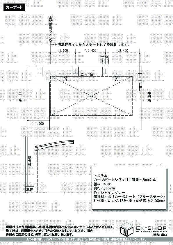 | 屋根材等 | ポリカーボネート(ブルースモーク) |