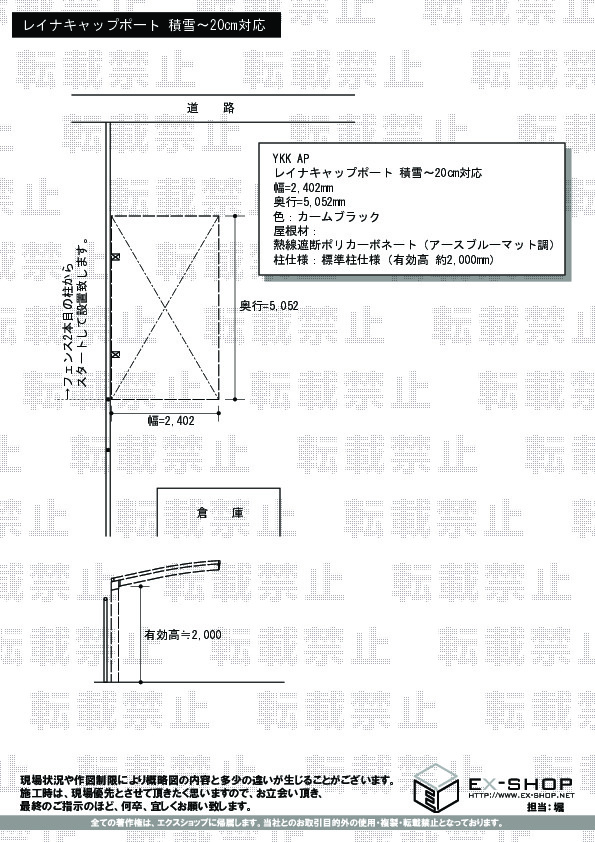 | 屋根高等 | 標準柱仕様(有効高:2000mm) |