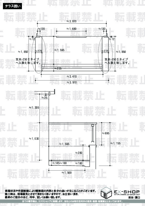 | サイズ | 間口 3,640mm 出幅 1,785mm |
