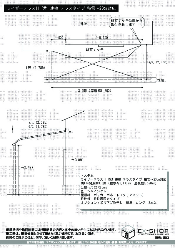 サイズ | 屋根幅 6,390mm 出幅 2,085mm |