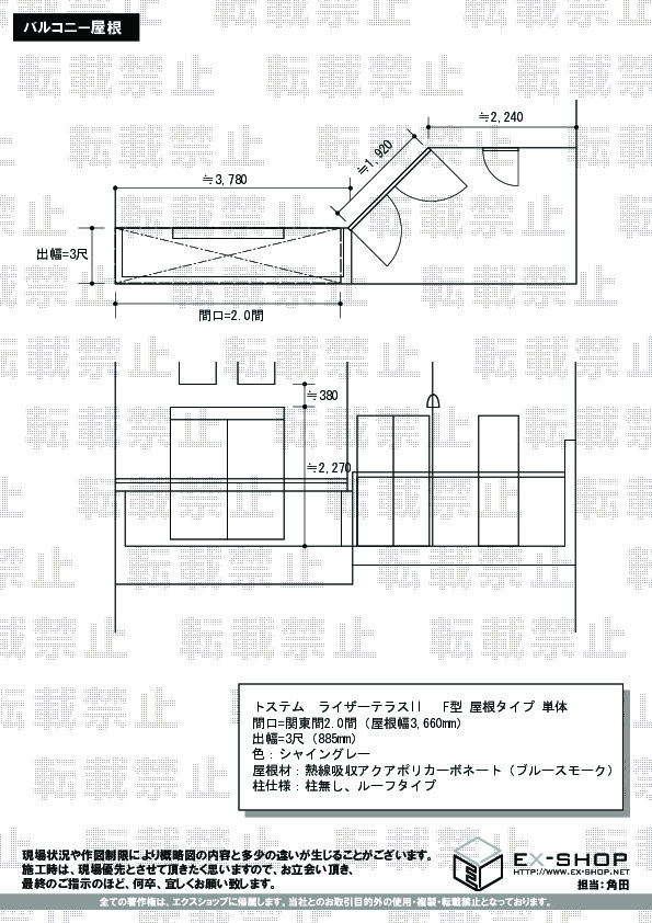サイズ | 屋根幅 3,660mm 出幅 885mm |