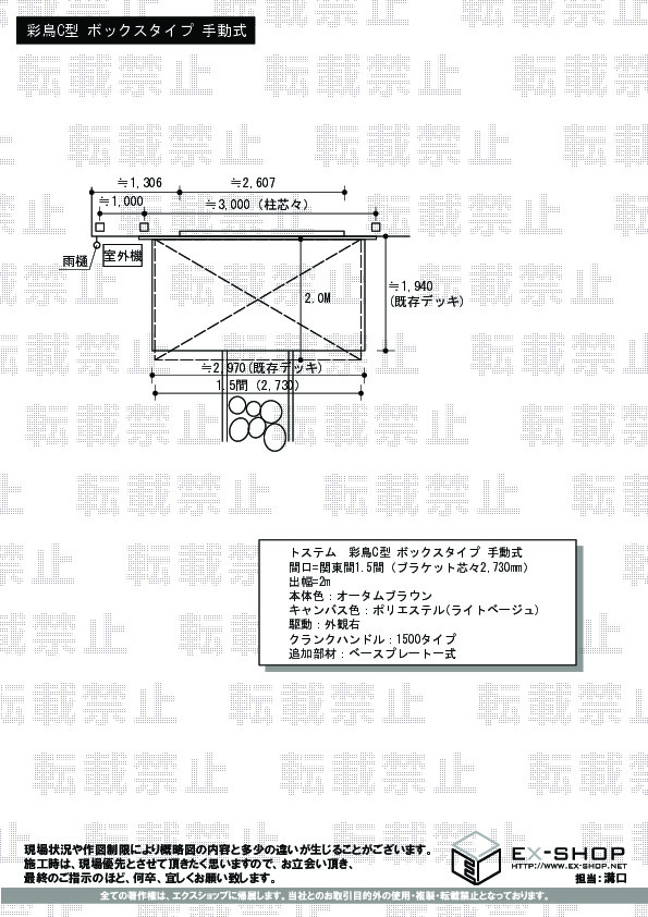 サイズ | ブラケット芯々 2,730mm 出幅 2,000mm |