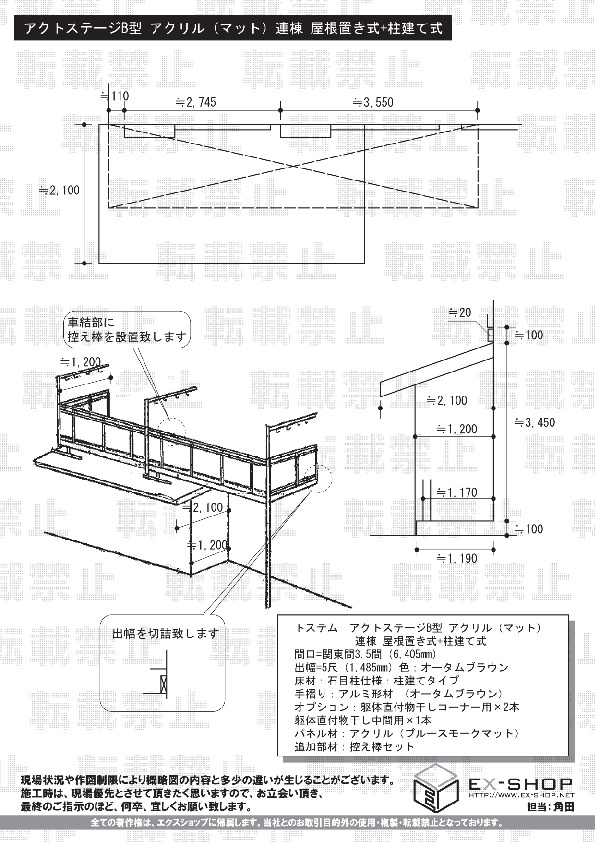 | サイズ | 間口 6,405mm 出幅 1,485mm |