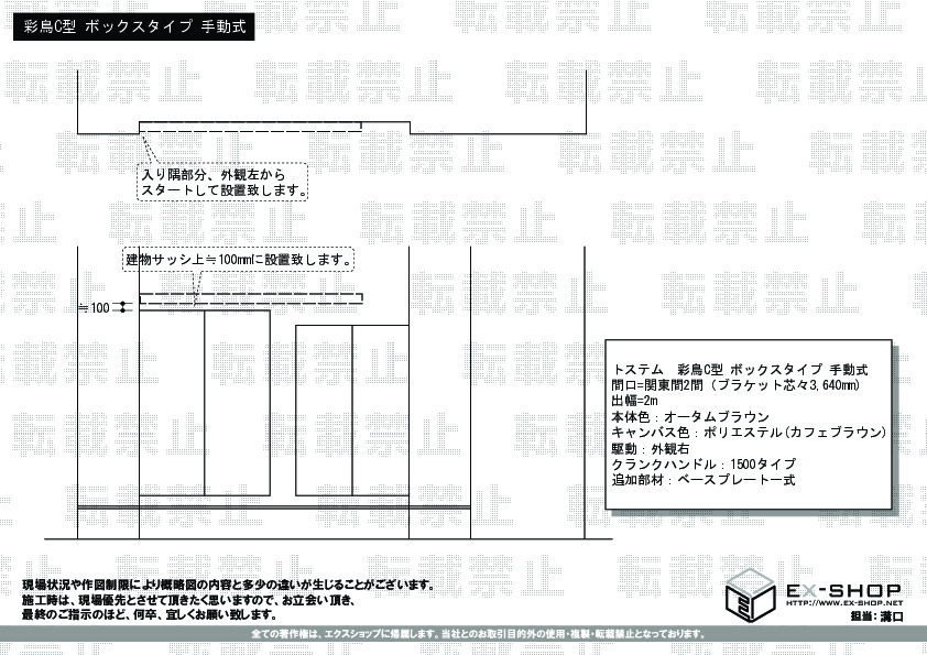 この度はエクスショップをご利用いただきまして、誠に有難うございます。お客様ご希望の外観を壊すことなくオーニングを設置させて頂くことができ、とても嬉しく思います。今後ますます精進してまいりますので、また機会がございましたら、ぜひ弊社をご用命くださいますよう、お願い申し上げます。