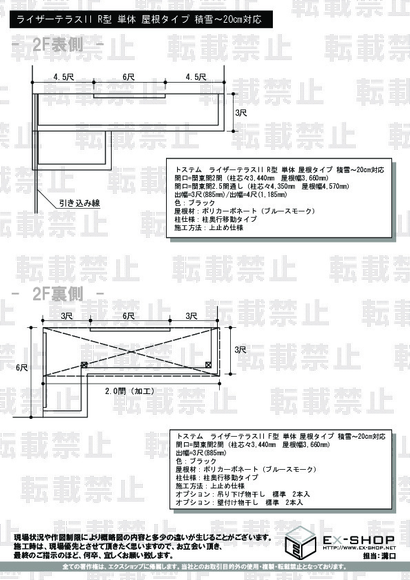 | サイズ | 屋根幅 4,570mm 出幅 1,185mm |