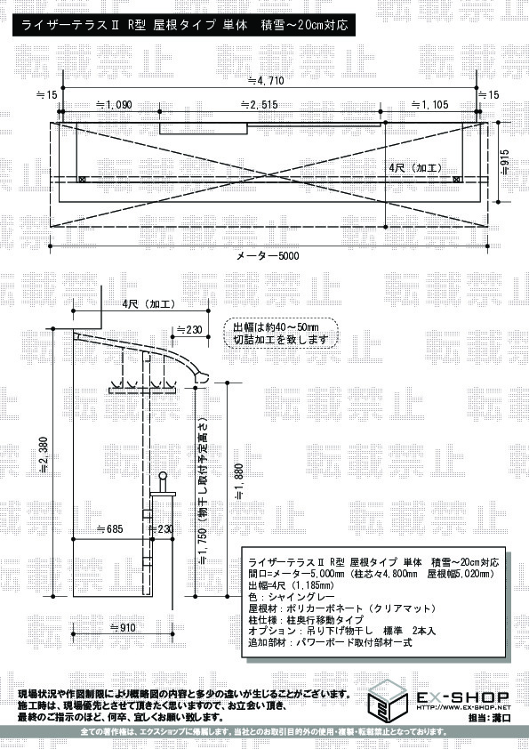 | サイズ | 間口 5,020mm 出幅 1,185mm |
