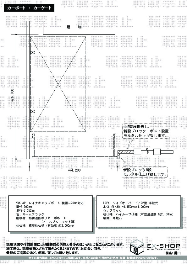TOEX ワイドオーバードアR1型 ハイルーフ電動タイプ 5400x1000