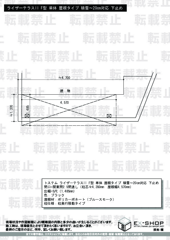 サイズ | 屋根幅 4,570mm 出幅 1,485mm |