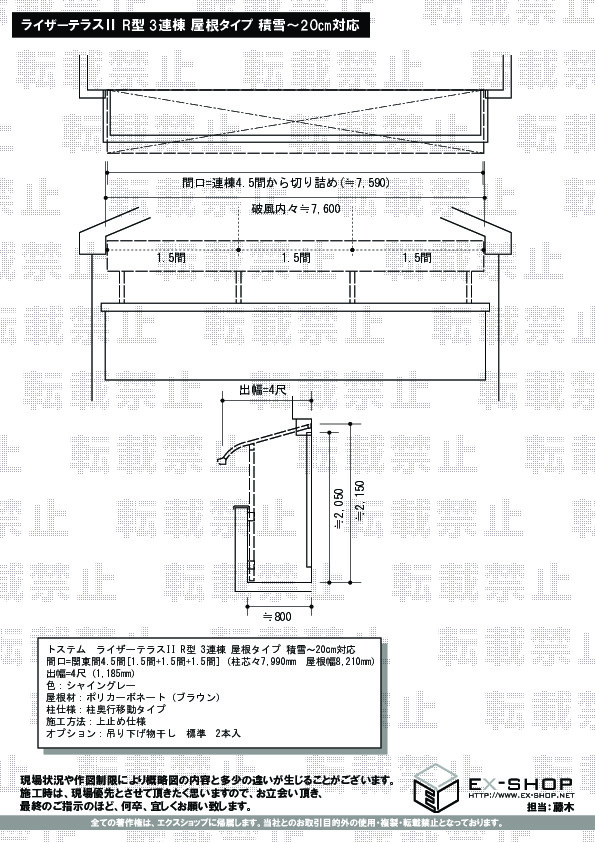 サイズ | 屋根幅 8,210mm 出幅 1,185mm |