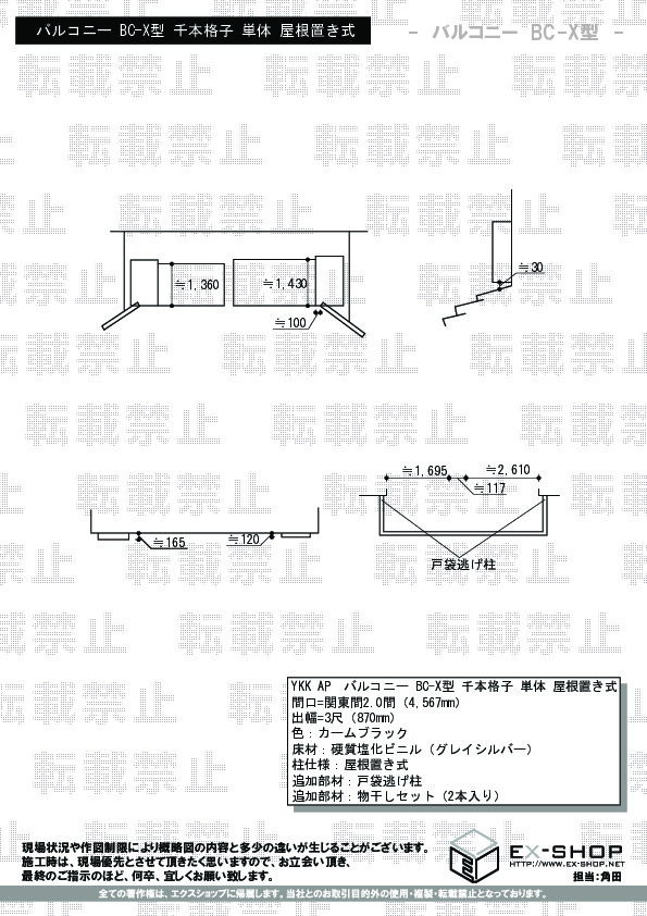 | サイズ | 間口 4,567mm 出幅 870mm |