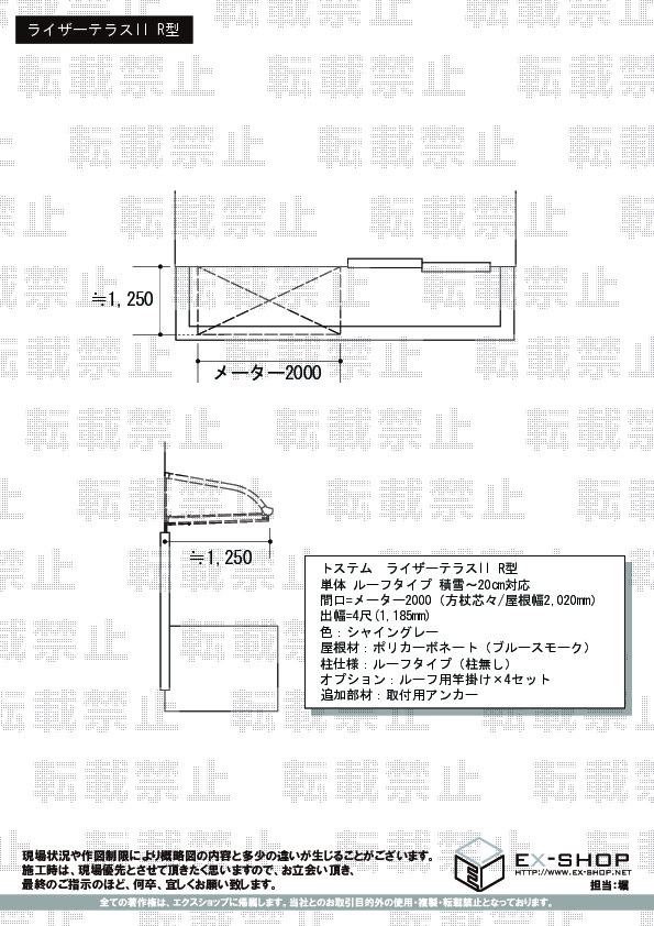 サイズ | 屋根幅 2,020mm 出幅 1,185mm |