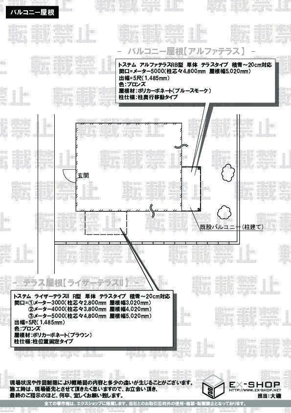 サイズ | 屋根幅 5,020mm 出幅 1,485mm |