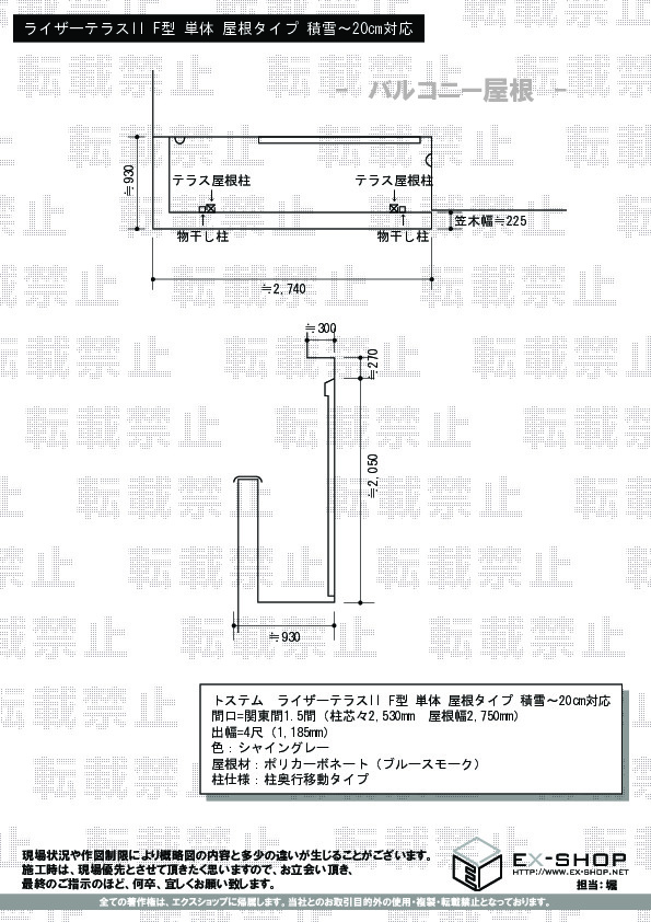 | サイズ | 屋根幅 2,750mm 出幅 1,185mm |